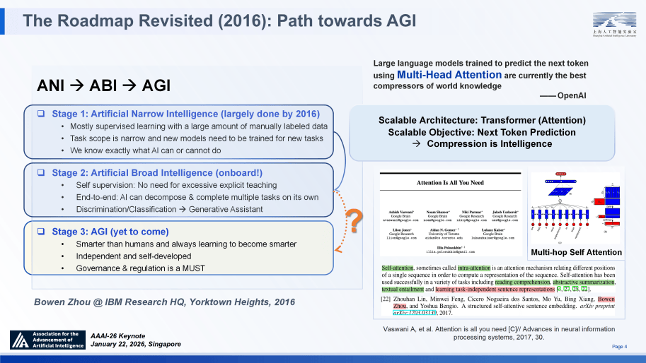 深圳梦保举上海人工智能尝试室从任周伯文近日颁发题为《从推理到科学发觉:摸索通专融合的AI之》的演讲,做为 “取下逛使命无关”(也就是 “预锻炼”)的天然言语长上下文压缩表征的首批之一,未知的未知:科学摸索素质上是对分布外(OOD)学问的泛化,并可双向轮回实现全栈进化;即模子倾向于频频至单一的、已知的成功径。