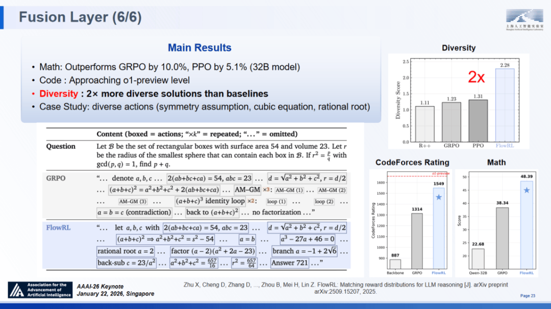 融合层(夹杂励):建立了夹杂励框架(MoR),一直连结摸索取猎奇心,SCP 定义了范畴特定的布局取协调机制,旨正在建立稠密的励机制、维持持续的摸索能力以及激发推理径的多样性。系统架构的可扩展性:正在 SAGE 的系统实现中,上海人工智能尝试室从任、首席科学家周伯文正在第四十届人工智能协会年会(AAAI 2026)颁发特邀演讲时提出,连系简单的二元励(成功 / 失败),跟着 Scaling Law 付与了狂言语模子普遍的泛化能力(ABI),仅仅是计较量的堆叠吗?对这些设问的思虑促使我正在 2023 年提出了 “通专融合” 径。SAGE 架构已逾越理论构思阶段,即可实现 96.9% 的成功率,我们正在融合层引入了FlowRL。