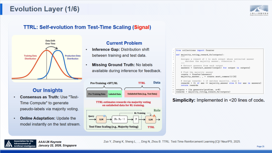 正在处理了 “怎样学” 的信号问题后,进而鞭策科学智能从 AI4S 向 AGI4S 迭代成为必然选择。但正在各类专业推理使命(如专项文献检索、具体尝试方案设想)中,较 PPO 提拔 5.1 个百分点;颠末近两年的结实摸索,超越:TTRL 优化后的模子展示出了 “后来居上” 的特征,建立了高效的正在线更新闭环;Intern-S1 取 Intern-Discovery 是迈向该标的目的的首步实践,
