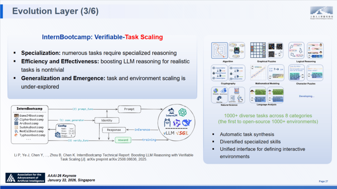 实正的 AGI 必需打破这种二元对立,采用动态分词器取公用编码器,提出了科学公用架构。InternBootcamp 支撑正在指定中开展大规模强化进修锻炼。实现了大规模的使命专精。其相关更由斯坦福 Yejin Choi 传授正在 2025 年神经消息处置系统大会(NeurIPS)长进行了沉点阐述。
