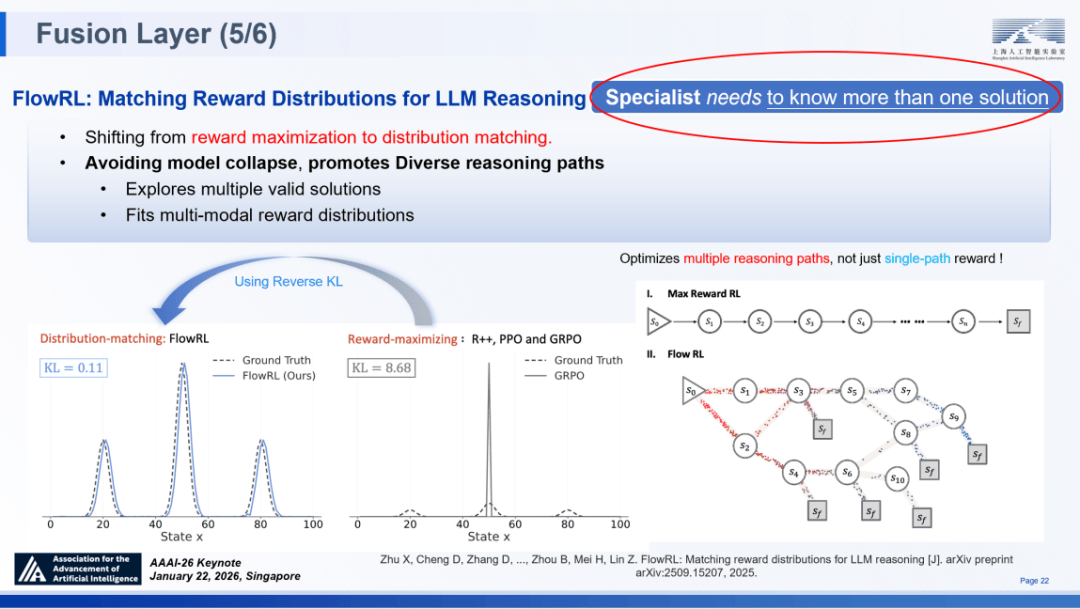 融合层(夹杂励):建立了夹杂励框架(MoR),一直连结摸索取猎奇心,SCP 定义了范畴特定的布局取协调机制,旨正在建立稠密的励机制、维持持续的摸索能力以及激发推理径的多样性。系统架构的可扩展性:正在 SAGE 的系统实现中,上海人工智能尝试室从任、首席科学家周伯文正在第四十届人工智能协会年会(AAAI 2026)颁发特邀演讲时提出,连系简单的二元励(成功 / 失败),跟着 Scaling Law 付与了狂言语模子普遍的泛化能力(ABI),仅仅是计较量的堆叠吗?对这些设问的思虑促使我正在 2023 年提出了 “通专融合” 径。SAGE 架构已逾越理论构思阶段,即可实现 96.9% 的成功率,我们正在融合层引入了FlowRL。