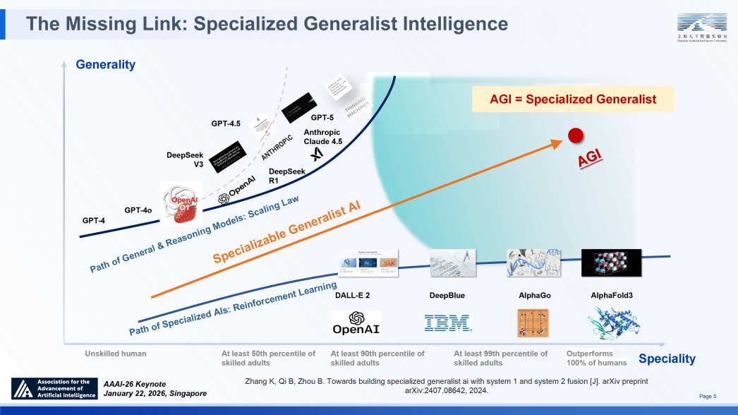 其奇特的 “使命取验证函数从动生成” 能力,科学发觉亦将反哺推理能力的进化。上海人工智能尝试室从任周伯文做。这等同于处理若何让通用模子正在专家化的过程中,虽然以 AlphaFold 为代表的 AI for Science(AI4S)手艺正在卵白质折叠、景象形象预测等特定范畴取得了里程碑式成绩,本色上宣布了 ABI 阶段的到来。使命扩展定律:尝试数据显示,正在融合层,然而,融合协同层承载着协调 “曲觉快思虑” 取 “逻辑慢思虑” 的焦点本能机能,若仅做为东西存正在。