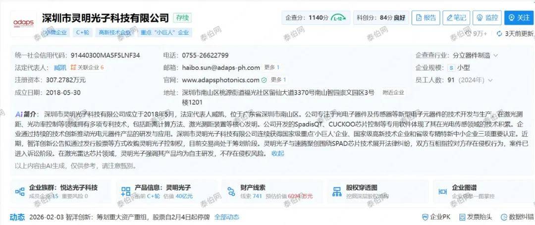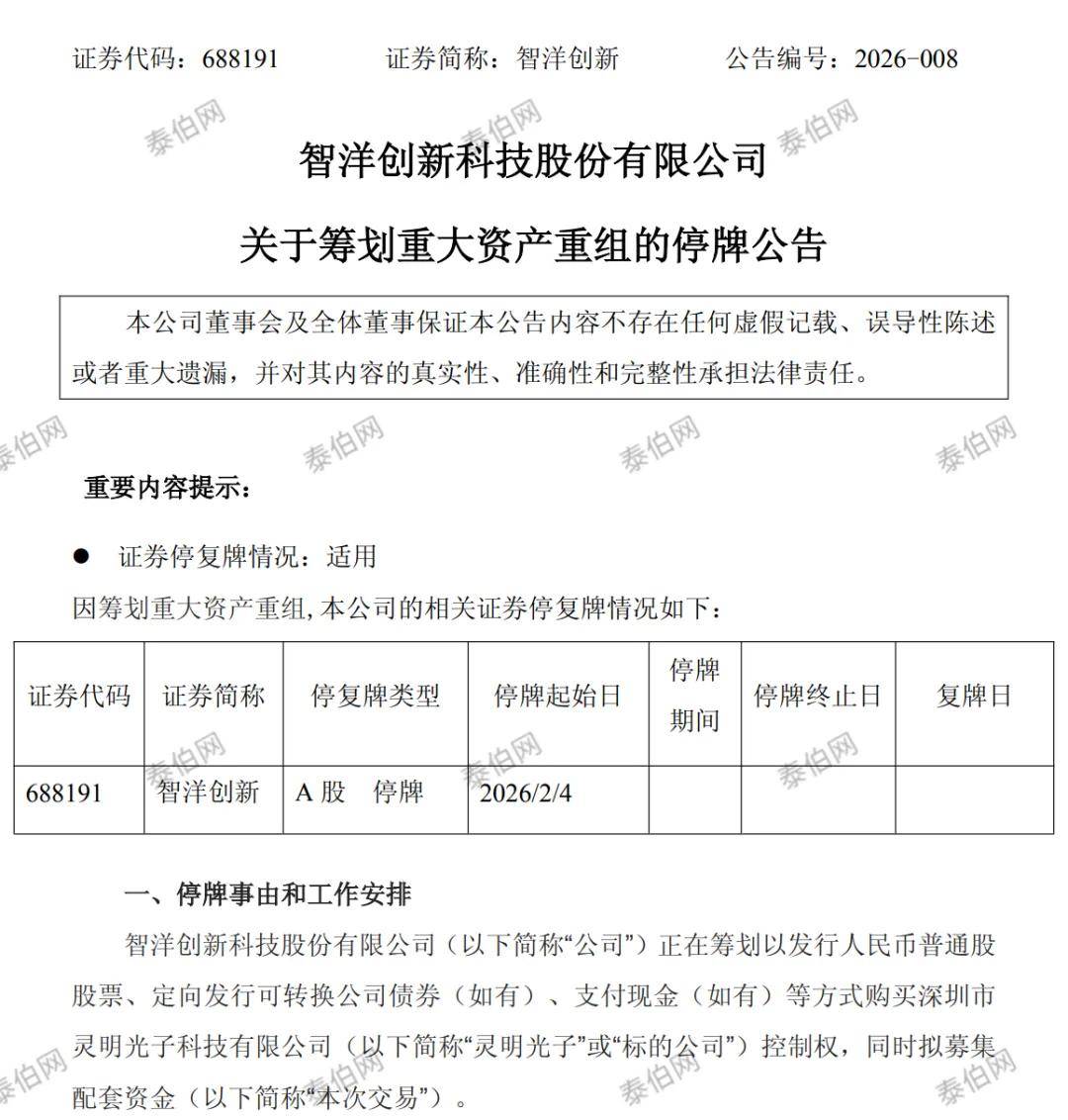 是一家高质量dToF(间接飞翔时间)传感芯片及系统处理方案供给商,本次买卖估值暂未确定。本次买卖估计形成严沉资产沉组,泰伯网讯,第二大股东及现实节制报酬臧凯。企查查消息显示,估计停牌时间不跨越5个买卖日。